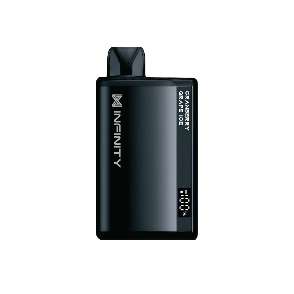 Infinity Ultra Cranberry Grape Ice – 8000 puffs, 55mg nicotine, 16ml juice, and a rechargeable 650mAh battery. Comes with a mesh coil for rich flavor, LED indicator, and a strong yet lightweight design.